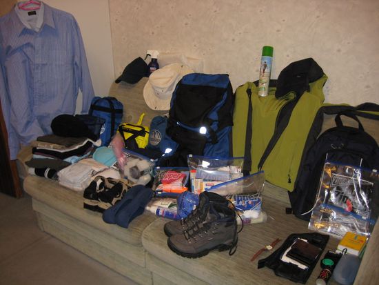 Das wären also: Schlafsack, Regenbekleidung, Badebekleidung und Sonnenschutz, warme Kleidung, da Quito zB auf 2800m liegt, Medikamtente, Shampoo, Zahnpaste, Zahnbürste, Reisestecker für alle Länder, ein wenig noch von dies und das und natürlich Mückenschütz, abgesehen vom Moskitonetz im gelben Packerl (550g!!! viel zu schwer eigentlich) und den Klebe-Häcken zum Anbringen an der Decke mit Tragekraft von 1,5kg, wobei mir gesagt wurde, dass dann wahrscheinlich gleich der Verputz runter fällt - hätten wir es ja dann schon FAST...