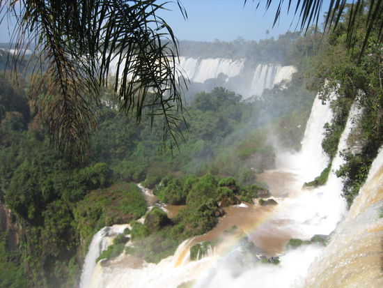 Eigentlich beruehmt ist Iguazu aber fuer den Nationalpark mit seinen 275 Wasserfaellen, welche sich 80 Meter in die Tiefe stuerzen. Die Wasserfaelle liegen sozusagen in einem drei Laender Eck, sodass ich gestern in Brasilien und heute in Argentinien war und morgen schon in Paraguay sein werde.