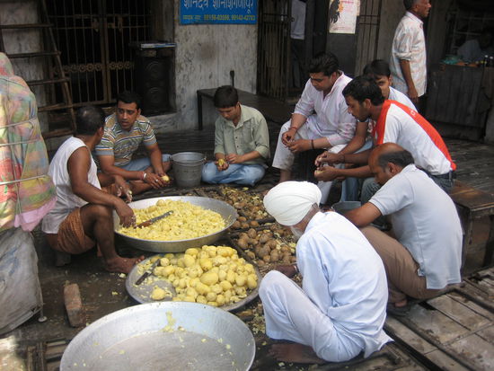 Tja und in Amritsar, wie auch sonst in Indien, beinahe am spannendsten ist und bleibt einfach die Beobachtung des Lebens. Besonders interessant wird es dann, wenn die Männer sich entlang der Strasse zum Kartoffelschälen treffen, während die Frauen auf ihren Köpfen Baumaterial zur Mischmaschine schleppen... Und da sage noch einer Indien sei rückständig!