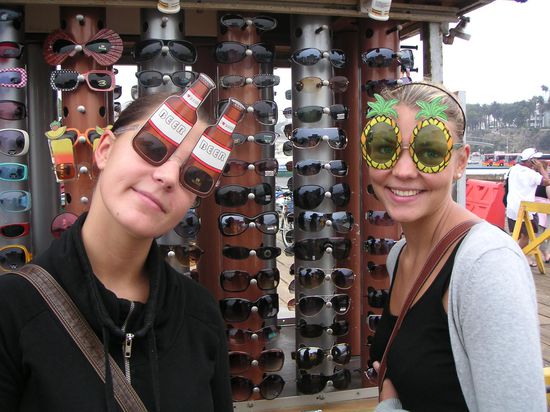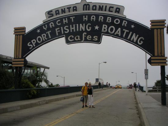 Obwohl das Hostel dank 14% lodging-steuer satte 38 dollar pro nacht kostete, konnten wir es uns trotzdem nicht entgehen lassen ein paar Naechte in Santa MOnica zu verbringen. Da die Busfahrt mit dem Greyhound 6h gedauert hat, kamen wir auch erst im Dunkeln in Los Angeles Downtown an. Zum Glueck hatten wir unseren Reisefuehrer vorher noch nicht studiert, denn dieser empfahl dringlichst gerade diese GEgend bei Dunkelheit zu meiden. Aus dem oeffentlichen Bus, in dem wir die einzigen weissen unter schwarzen und Mexikanern waren, sahen wir dann auch warum. Die Gehwege waren voll mit unheimlich aussehenden Farbigen, die sich dort zu naechtlicher Stunde trafen. Keine Ahnung, was die dort taten, aber da durchgegangen, mit unseren Rucksaecken, waeren wir auf keinen Fall! Nach einer geschlagenen Stunde im Bus erreichten wir dann auch unser Hostel, das in einer sehr schoenen Gegend liegt, in der man auch nachts noch gerne unterwegs ist. 2 Blocks vom Strand und von der Santa Monica Third Street Promenade entfernt, die ein grosses Einkaufsparadies ist. Den einen ganzen Tag den wir in Santa Monica zur verfuegung hatten, verbrachten wir auch an diesen beiden Orten. Beeindruckend war hier die Breite des Strandes fuer deren Bewaeltigung man vom Wasser bis zur ersten Strasse schon 3 min brauchte.