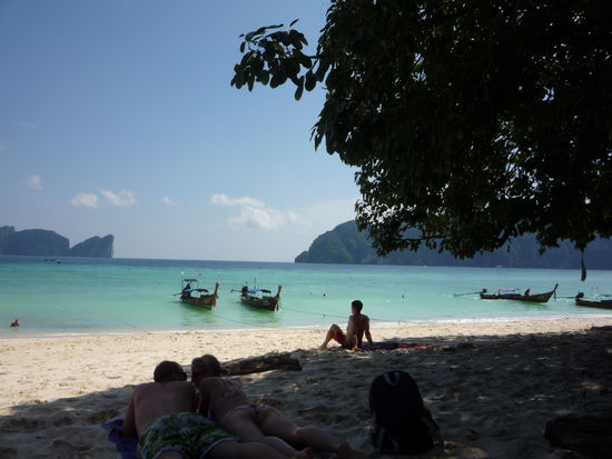 In Kho Phi Phi herrschte schoenes Wetter und was uns gleich begeisterte war das klare tuerkisfarbene Wasser.