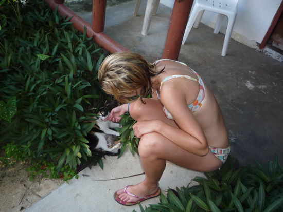 Wie schon auf Kho Lanta gabs auch hier eine Katzenmama mit suessen Babies.