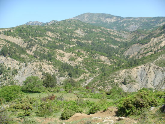 Die Landschaft ist von einer farblichen Vielfalt wie sie wohl kaum größer sein kann. Nach Permet folgen wir immer noch dem Tal des Vjoses, die Kurven werden nun seltener und die Fahrt wird etwas zügiger, ich glaube ich habe seit Tagen wieder einmal in den vierten Gang geschaltet. Nach einer kurzen Stippvisite in Tepelene, leider konnte die Burgruine von Ali Pascha, auf der auch der englische Schriftsteller Lord Byron eine Zeit zu Gast war, nicht besichtigt werden. Auf der Höhe der Mauern thront weithin sichtbar eine Coca Cola Oase. Kurz hinter Tepelene direkt an der Einmündung nach Permet unterhalb der Eisenbrücke