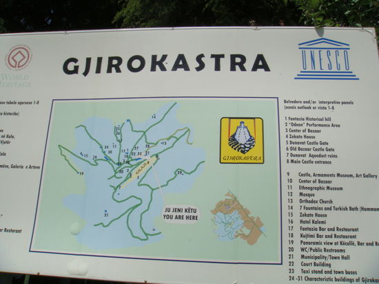 Um mit dem WoMo in die Nähe der Burg und der Altstadt zu kommen, sollte man fast durch Gjirokaster fahren bis auf der rechten Seite die Hinweisbeschilderung zur Burg