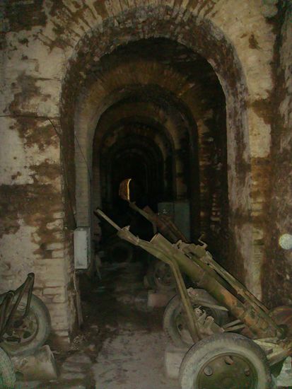 Um in die Burg hinein- oder herauszukommen folgt man einem dunklen Gewölbegang, in den von links und rechts die Rohre von verschiedenen Geschützen ragen.