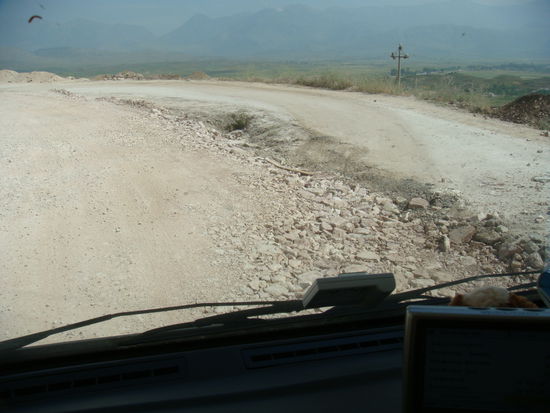Das Problem ist, dass die alte Straße die schon mit Schwierigkeiten zu befahren war, zum Teil nicht mehr da ist. Oder weil durch die Straßenverbreiterung der abgesprengte Fels und sonstiges Erdreich einfach mit Planierraupen über die ganze Fläche verteilt wird.