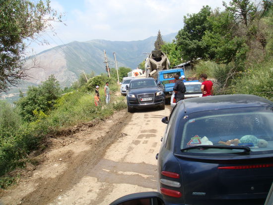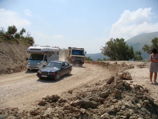 Die Straße von Tepelene bis Jerqucat, ist bis auf die Baustelle kurz hinter Tepelene, als Rennstrecke für Albaner und Griechen ausgebaut.