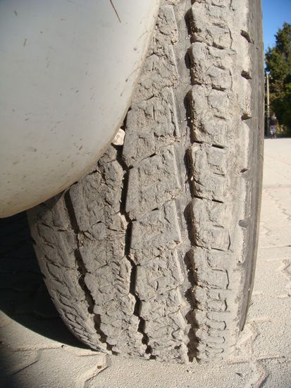 Ich hoffe, dass ich mit dem Satz neuer Reifen, die ich direkt vor der Abreise montieren ließ, bis nach Deutschland zurückkomme, das Profil ist teilweise richtig aus dem Reifen gerissen und die Leinwand ist an einigen Stellen sichtbar. Eine Hoffnung besteht allerdings, die Straße soll in 2009 fertig werden.