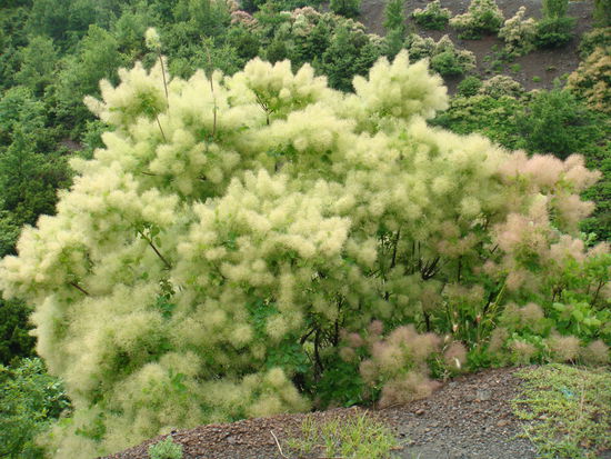 das von Baggern oder einzelnen Bauarbeitern in der Höhe aus dem Fels gebrochen wird.