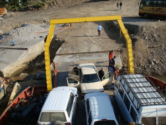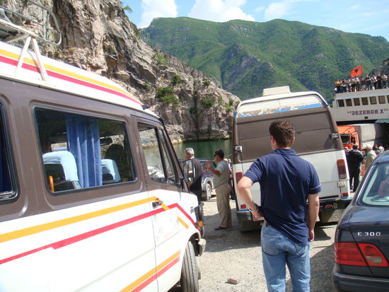 Bei der Ankunft in Koman sah man das Chaos schon von weitem, der gesamte Vorplatz der Anlegestelle und der Tunnel standen voller Auto´s.