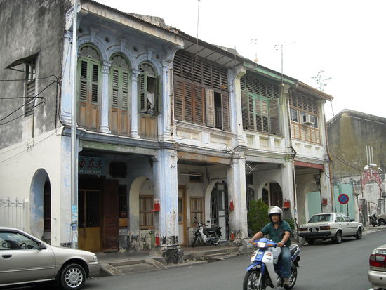 Malaysia. Endlich. Nach der schrecklichen, schrecklichen Horror-Horror- Anfahrt sind wir nun hier angekommen. Die Stadt ist wunderschoen und hat unheimlich viel (koloniales)Flair. Hier wollen wir endlich bleiben. Wir haben das Guesthouse fuer die naechsten fuenf Naechte bezahlt und sehen nunmehr sorgenfrei in die Zukunft (also bis naechste Woche...). Dann geht es entweder weiter nach Batu Ferringhi, das ist ein Strand auf der Insel Penang, auf der auch Georgetown liegt, oder Langkawi, eine benachbarte malayische Ferieninsel. Denn schnorcheln wollten wir ja eigentlich doch noch mal. Die Stadt ist viel ruhiger und angenehmer als Bangkok oder die anderen thailaendischen Staedte, die ich bis jetzt gesehen habe. Es riecht vor allem sehr angenehm und nicht nach altem Fisch und Partyschweiss wie in Bangkok! Hier in Georgetown befindet sich theoretisch ein ethnisch-kultureller Schmelztiegel aufgrund der vielen verschiedenen Religionen, jedoch leben sie alle sehr friedlich (dies ist mein Eindruck-habe ich auch gelesen) zusammen. In einer Strasse gibt es Moscheen neben hinduistischen Tempeln, buddhistischen Tempeln und chinensischen Prachtbauten. Hier in Georgetown leben laut Reisefuehrer 45% Malayien, 40 % Chinesen und der kleine Rest ist ein buntes Gemisch. Dies fuehrt aber dazu, dass hier nicht nur eine kulturelle Vielfalt herrscht, sondern auch nunmehr eine kulinarische, welche fuer mich besonders interessant ist. Das werden wir morgen gleich erkunden, hier soll es naemlich einen "International Food Trail " geben, wo man Spezialitaeten aus ganz Suedostasien probieren kann. Unser Guesthouse kostet pro Tag umgerechnet 8 Euro. Das ist superguenstig, wir haben sogar einen Balkon und eine Dusche (nicht selbstverstaendlich). Hier bin ich endlich angekommen. Gleich gehen wir lecker essen zum "Red Garden Restaurant", da gibt es abends Livemusik. Der Besitzer oder Manager des Guesthouses ist uebringens 80+x Jahre alt und hat sich ruehrend um uns abgekaempfte Traveller gekuemmert und uns alles Wichtige (Internetcafe, Geldautomat, Sehenswuerdigkeiten) auf einer Karte eingezeichnet. Unglaublich, dabei hat er nur noch einen einzigen Zahn im Mund Hier sind unsere ersten Eindruecke, die auf dem Weg zum Cafe enstanden sind. Morgen gibt es Tempel and more. (Lisa)