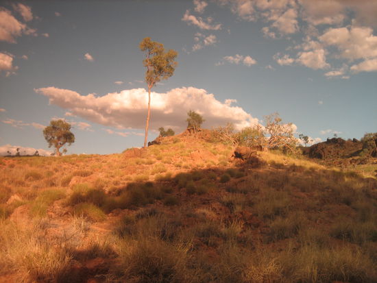 Erstes Ziel: die West MacDonnell Range, eine 310-340 Millionen Jahre alte Gebirgskette ca 2 h von Alice entfernt mit herrlichen Waterholes. Dort landeten wir allerdings nur wegen einer Polizeikontrolle, bei der uns erstmal das Herz in die Hose rutschte, da die beiden Maedles keinen Fuehrerschein mehr besassen (wurde geklaut). Nach einem kleinen Verhoer wurden wir gefragt, wo es denn hingehen soll. "Ellery Creek Bighole" - "Da seid ihr falsch. Ihr muesst ca eine Stunde zurueck fahren und dann rechts abbiegen." - So leicht verirrt man sich im Outback, wenn man nicht aufpasst.