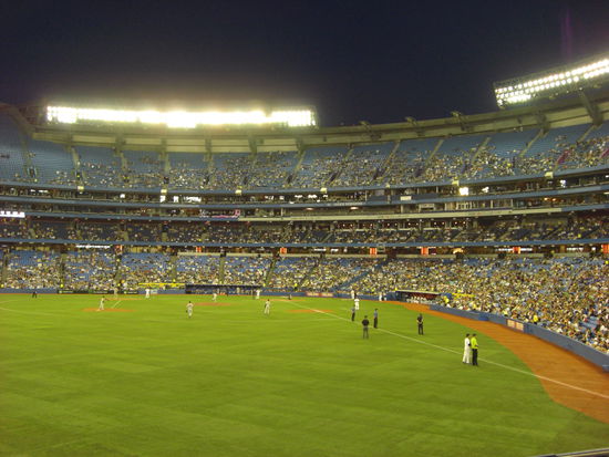 Es wird Zeit mich mit Eduardo zu treffen, mit dem ich noch die Blue Jays, das Torontoner Baseballteam, schauen wollte. Da das Bier im Rogers Center (frueher Skydome) zu teuer ist, trinken wir vorher noch eins in einer nahe gelegenen Kneipe. Das Spiel selbst ist ziemlich gut, auch wenn es recht lange dauert, bis man die Mysterien des Baseballs entschluesselt hat... Wie auch immer, die Blue Jays haben auf dem letzten Druecker das Spiel noch rumgerissen und gewonnen.