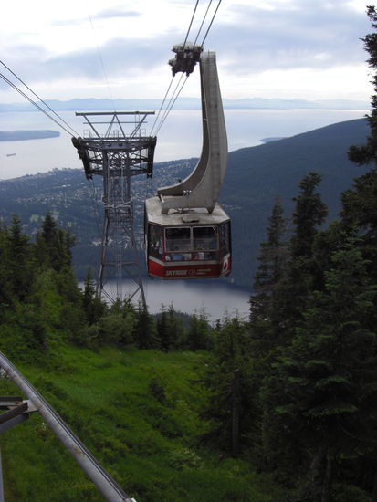 Green ist ein Amerikaner, der nicht viel arbeitet und daher ziemlich viel Zeit hat in andere Laender zu reisen. Er hat mich schon ziemlich frueh angeschrieben und gefragt, ob ich nicht Lust haette mit ihm was in Vancouver zu unternehmen. Heute ist dieser unternehmungslustige Tag der uns 1250 m aufwaerts auf den Grouse Mountain bringen soll.