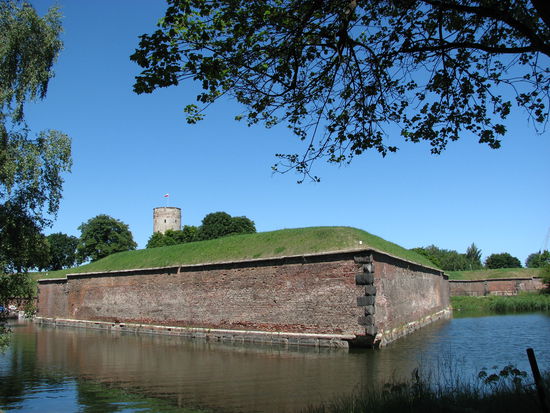 Auf dem Rückweg von Sopot mit dem Schiff haben wir eine interessante Festung vom Fluss aus gesehen. Wir haben am letzten Tag noch etwas Zeit und beschließen, mit einer der abenteuerlichen Strassenbahnen dorthin zu fahren. Leider haben wir nicht eruieren können, ob wir die Festung betreten können.
