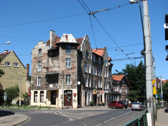Auf dem Rückweg zur Strassenbahn entdecken wir eine Fähre über die Weichsel, die uns nach Nova Port bringen kann. Wir beschließen einen kleinen Rundgang, der uns vorbei an einem alten Strassenbahndepot durch noch 'erhaltene echte Ostblockviertel' führt, bevor wir wieder mit der Strassenbahn auf abenteuerlich krummen Schienen in die Innensdtadtr Danzigs zurückfahren.