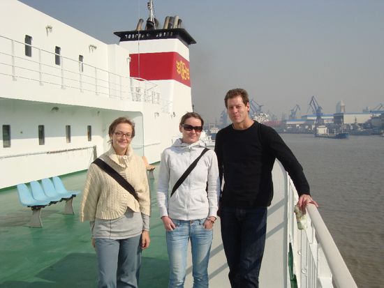 willkommen an Bord der Xin Jian Zhen, dieses chinesische Schiff wird uns sicher über das ostchinesische Meer aufs chineseische Festland in den Hafen von Shanghai bringen,