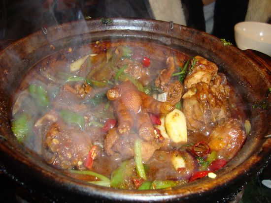 Dieser schmackhafte umfangreiche Hühnertopf hat uns schon zunächst ein wenig Überwindung gekostet. Schmeckte dann aber so gut wie "Muttis Eintopf"!!, Hut ab vor Hühnerfüssen . Nach einer Weile Chinaaufenthalt wird man immer mutiger bezüglich ungewohnter Nahrungsaufnahme, hab da schon bei so ätlichen Gerichten zunächst gehadert und dann mit Genuß verzehrt.