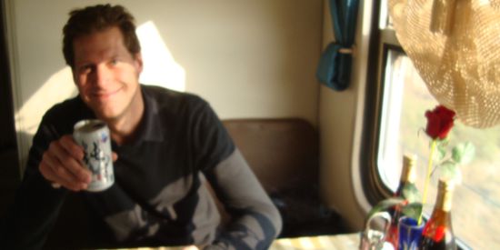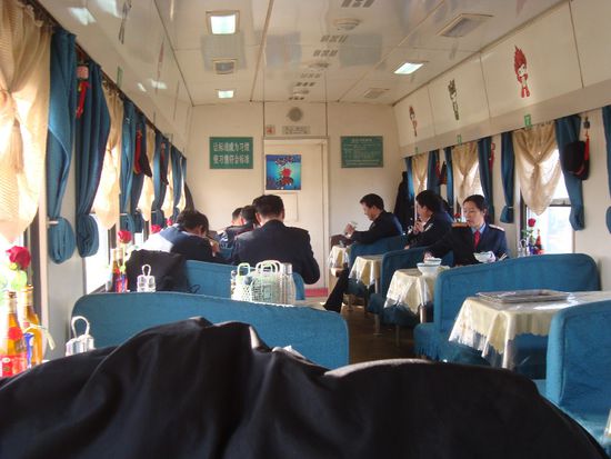 Durfte mit meiner grossen Fahrradtasche im Speisewagen Vorlieb nehmen mit Blick aufs speisende Personal.