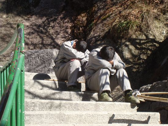 Macht schon müde, das Arbeiten in luftiger Höhe! Sauerstoff ist hier knapper und da schläft sich's schon mal'n Stündchen im Sitzen.