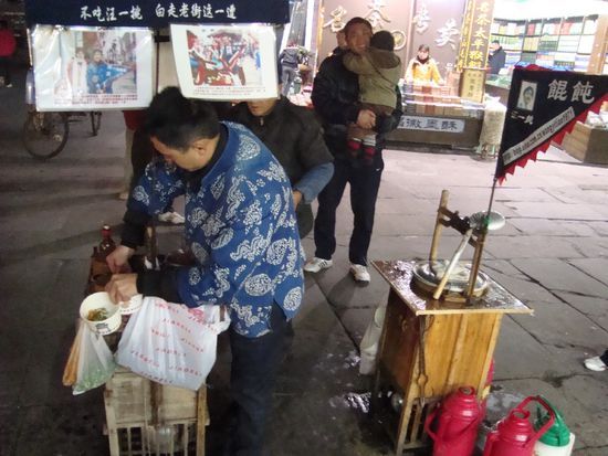 Dieser Herr führte an seiner mobilen Kücheneinrichtung ein Diplomszeugnis, das seine Kochkünste bestätigen sollte. Und das wurden sie, denn es war eine Augenweide ihm beim Zubereiten seiner Suppe zuzusehen. Die Schnelligkeut und Präzision, mit der er die Zutaten von 20 cm Entfernung mit einem Löffel in die Schüsselchen schleuderte, das war einfach nur einmalig und Spitzeeeeeeeeeee!!