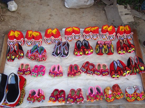 Für den Abstieg vom Berg hätte man sich auch für diese Schuhe, die einen mit großen Katzenaugen ansahen entscheiden können, es war nur nicht die richtige Schuhgröße dabei.