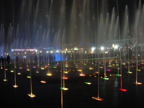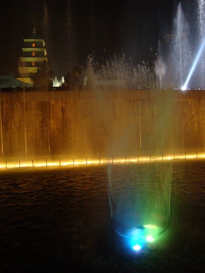 In Xian' an der "big wild goose pagoda" findet allabendlich ein prachtvolles Wasserfeuerwerk statt mit musikalischer Begleitung