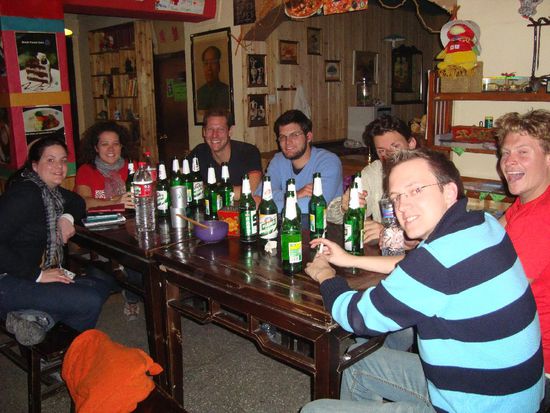 Im Shuyuan hostel war nach dem Dumplings- Abendessen erst mal wieder Aufheizen mit ein paar Bierchen angesagt.