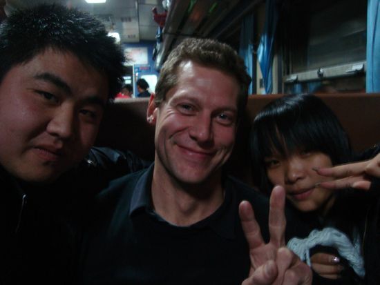 Im Bus die letzten Sitzplätze ergatternd, umgekehrt zu den restlichen Reisenden sitzend, war dann noch Fotosession angesagt, denn gut die Hälfte der Mannschaft ließ sich mit uns nacheinander ablichten! Das war ne Menge China-Spaß!!