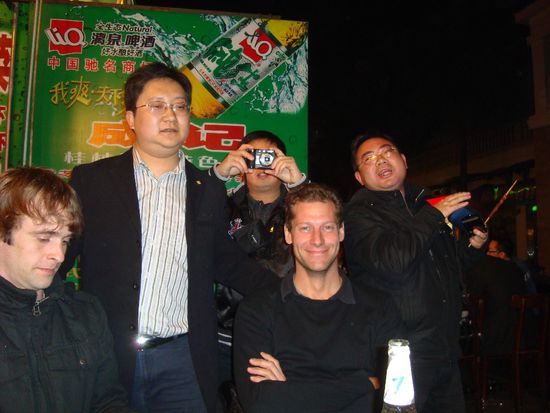 An diesem Abend fanden wir uns mit den betrunkensten Chinesen der gesamten Stadt wieder. Sie verlagerten ihr Besäufnis vom Nachbartisch zu unsterem, da sie sich von Ausländern scheinbar wie magisch angezogen fühlten.
