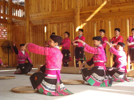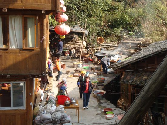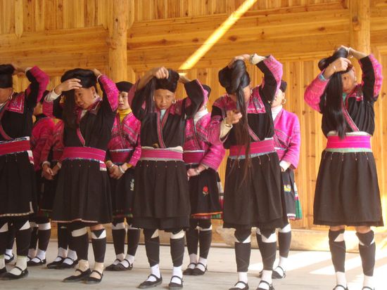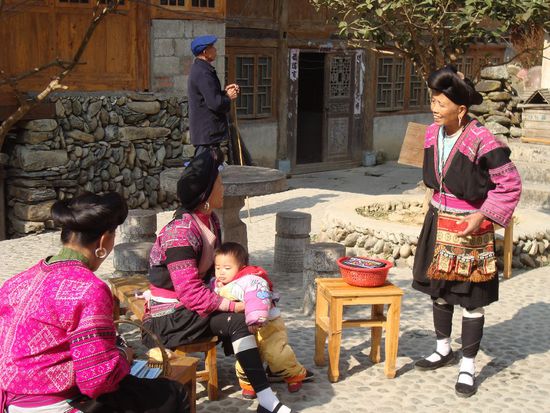 Die hier lebende Minderheit nennt sich Zhuang und Yao, die Menschen führen ihr Leben völlig nach alter Tradition und Brauch. Dies betrifft Kleidung..