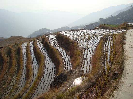 Am nächsten Tag führte uns ein Ausflug ins 2 Stunden nordwestlich gelegene Longji, einer Gegend mit ahtemberaubenden hochgelegenen Reisterassen.