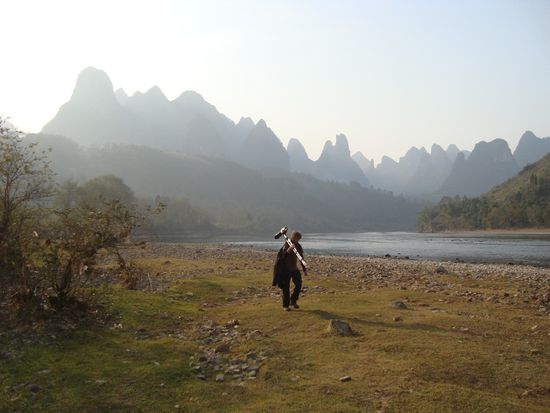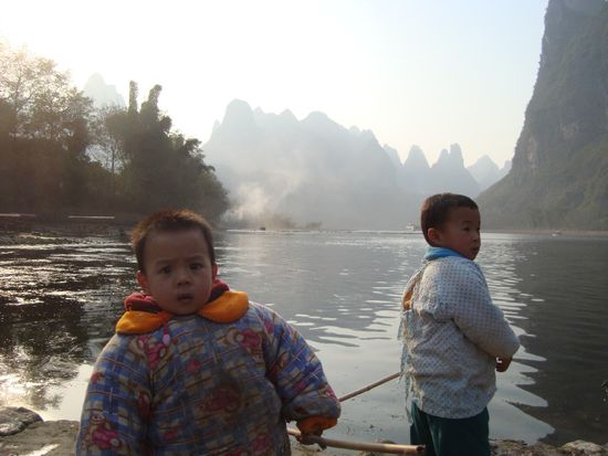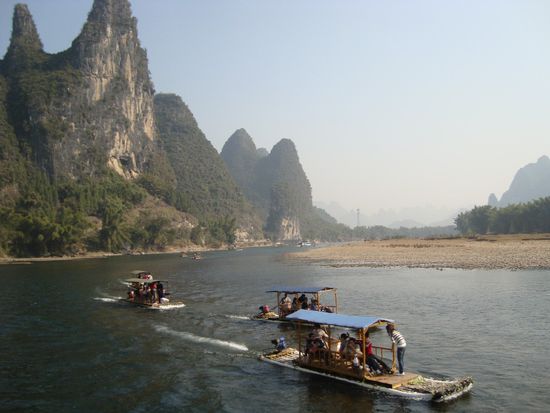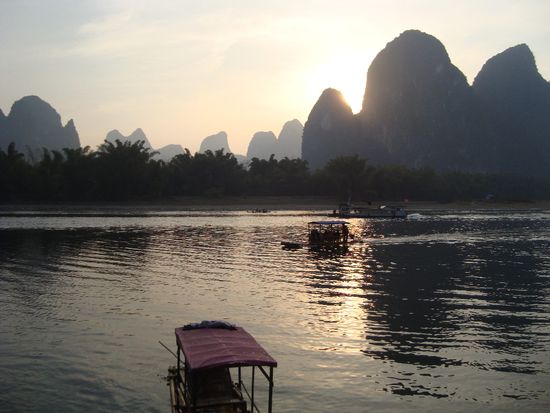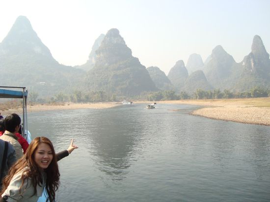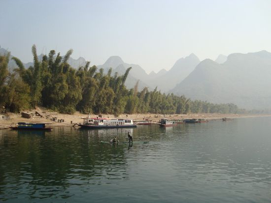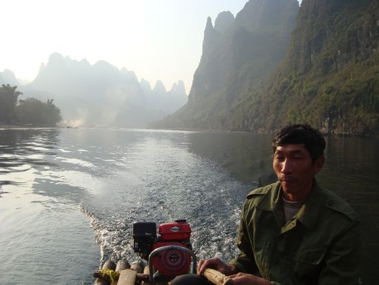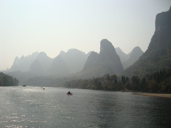Mit einer Fähre ging es weiter auf dem Li river von Guilin ins 70km entfernte Yangshuo.