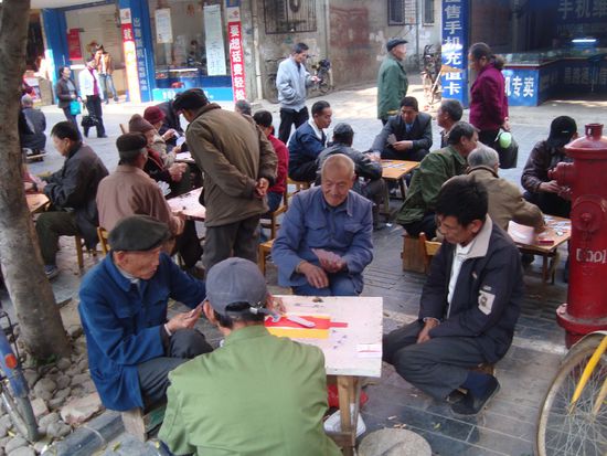 Zum Anlass der Geselligkeit wird hier gleich an zeidutzend Tischen Karten gespielt..
