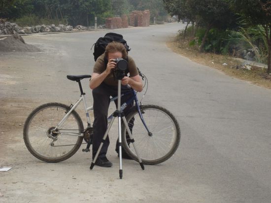 Christian kam mit dem Bus nach Yuangshan nach, nachdem ich ihn von der Schönheit dieses Ortes überzeugen konnte und ..wupp- saßen wir auch schon wieder auf dem Rad. Einziges Handycap..der Aufbau seiner Profi-Kameraausrüstung. Da waren immer lange Stopps für 32MB-Hochqualitätsbilder angesagt. Um die Momentaufnahmen kümmerte ich mich derweil, die konnte er nicht erfassen, dafür war er mit seinem Equipment schlicht zu lahm.