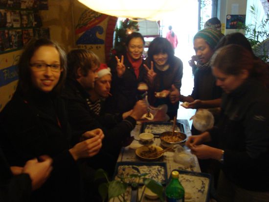 Wir ließen sie aber gelassen gewähren und zusammen mit zwei Italienerinnen hatten wir alles in einem einen recht vergnügten Abend und ließen uns ein wenig vom chinesischen Bier hinreißen. Die chiesischen Trunkenlieder puschten unsere Stimmung maßhaltig nach oben.