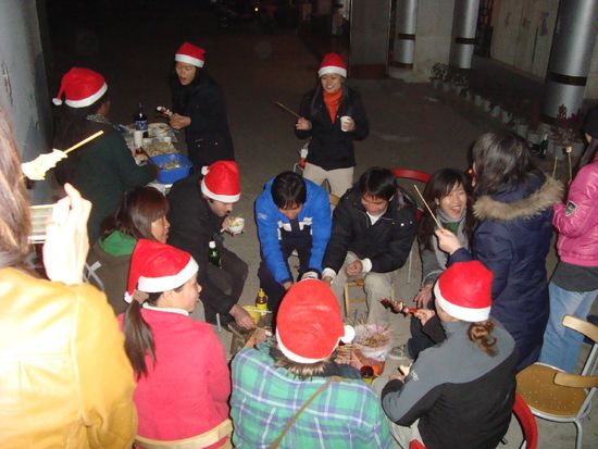 Die Temperatur sank von einem Tag auf den anderen am 23.12. um ganze 20 Grad von 25 auf 5.°C, da mussten wir uns zunächst winterlich anziehen und da schlug es 24., Weihnachten war da! Um Geschenke mußte sich hier diesjahr keiner kümmern, dafür bauten wir aber bereits mittags Dumplings und füllten Spieße fürs abendliche Barbecau. Für einen kleinen Weihnachtsbaum war auch gesorgt.
