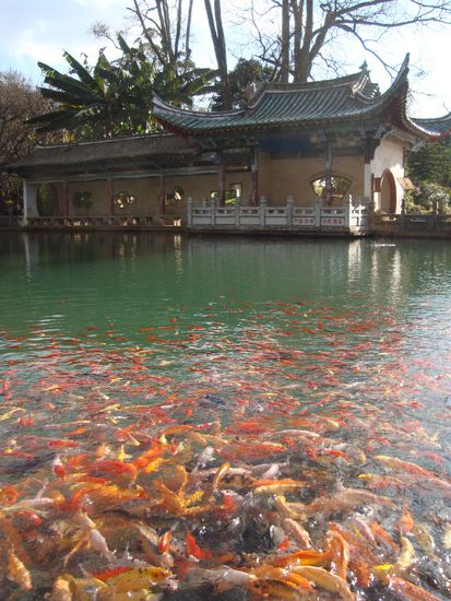 Ebenfalls sehenswert ist der Pfad zur Daragongate ca. 10 km südwestlich Kunmings. Hier darf man gleich mehrere Tempel in Augenschein nehmen, bei dessen Pflanzenpracht der Frühling schon im Januar eingesetzt hat.