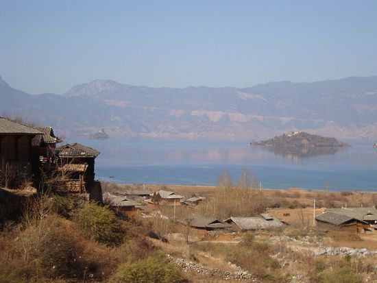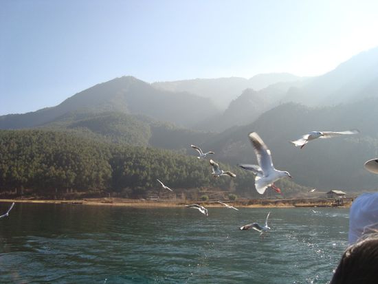 Der Lugu Hu lake liegt in einer Höhe von 2700 m und ist nur über zum Großteil schlechte Serpentinen erreichbar. Er ist die Fahrt aber allemal wert,denn er zieht jeden regelrecht magisch in seinen Bann. Er ist so kristallklar, daß man den Grund gar noch in über 12 Metern Tiefe sehen kann und bei idealen Wetterbedingungen wirkt er wie ein Spiegel und bildet im Wasser das Ebenbild dessen ab, was über ihm am Himmel an Wolkenformationen zu sehen sind.