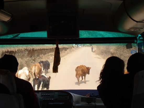 Zuletzt die Rückfahrt nach Lijang, wo es uns erneut des öfteren aus den Sitzen hob. Doch das war ja nun schon Gewohnheit.