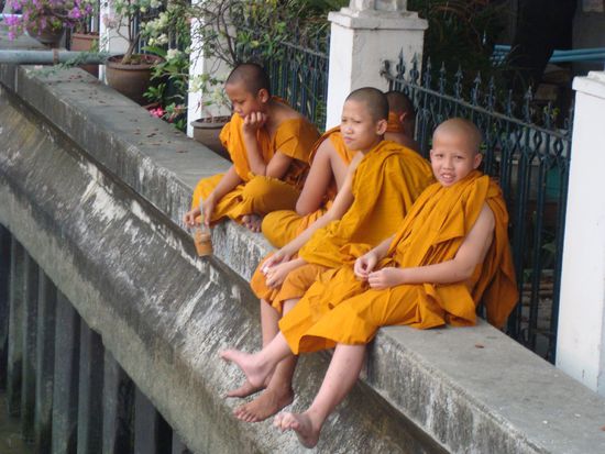 Die Thai- Mönche zur Abwechslung andersfarbig gekleidet als die burmesischen, sind aber genauso fotogen