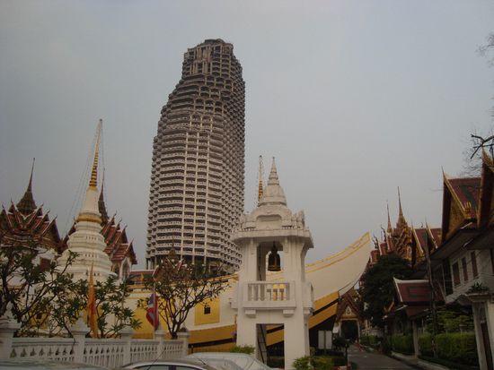 Was wohl dieses Gebäude, das dem hübschen Tempel so ziemlich die Show stiehlt, vor seiner Fertigstellung abgehalten hat? Na wahrscheinlich war der Protest der Mönche schon ausreichend. Die Abrissarbeiten lassen wohl noch auf sich warten.