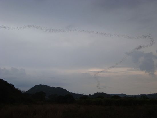 doch das, was hier draussen zu Einbruch der Dämmerung zu sehen war, ließ jeden verstummen. Die grösste Fledermauspopulation der Welt von mehreren Millionen bat strömen aus ihrer Höhle hinaus in den Dschungel um sich an Moskitos satt zu fressen um denn morgens vor Sonnenaufgang zurückzukehren. Ihr glaubt es nicht, doch erst nach einer Stunde hatte auch die letzte Fledermmaus ihr dunkles Loch verlassen.