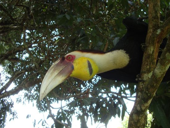 ein neugieriger und wenig scheuer Hornbill, der hier aufgezogen wurde. Hätte ich ihm nicht meinen Finger zugestreckt, hätte er danach nicht geblutet. Hab den großen bunten Vogel als berechenbarer eingeschätzt.