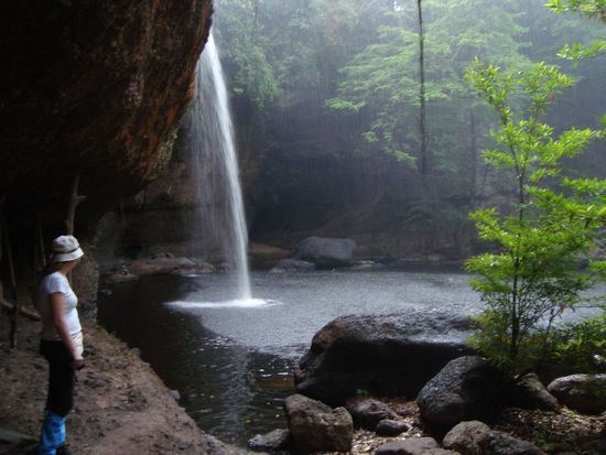 den bekannten Wasserfall aus dem Film "The beach" bei strömenden Regen,