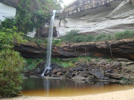 Der Pha Taem Nationalpark bietet auch eine Vielzahl Wasserfälle, die jedoch nur während und nach der Regensaison richtig spektakulär Wasser führen. Musste mich da vereinzelt schon mit einem kleinen Rinnsal zufrieden geben. Dieser hier war denn aber doch gut genug, um sich eine wohltuende Abkühlung zu verschaffen.