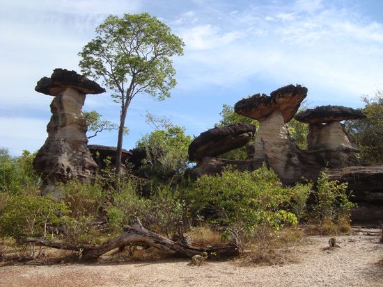 Erneut mit dem Zug ging es vorbei an Buriams fussballbegeisterten Jungstars ins 250 km östliche Ubun Ratchathani. Der Ort selbst bietet nichts allzu Sehenswertes, ist aber ein guter Ausgangspunkt in die umliegenden Nationalparks.