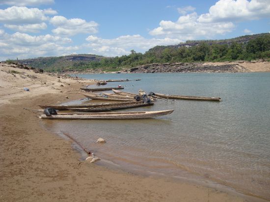 Mit Zwischestopp in Chong Mek in nördliche Richtung entlang des Lao Grenzverlaufes war der Pha Taem Nationalpark nach ca. 200 km erreicht.Hier trifft man auf edyllisch gelegene Fischerdörfchen am Mekong river,