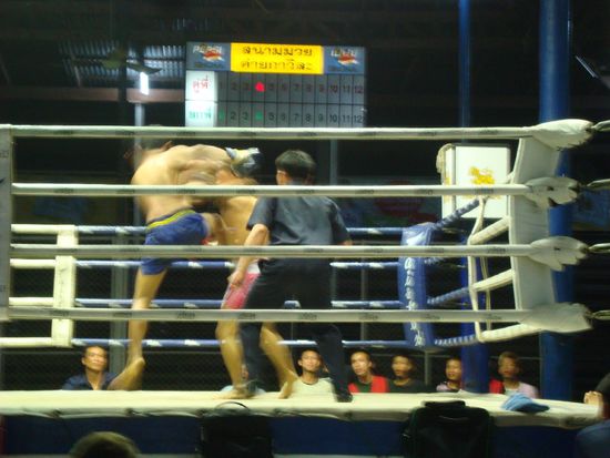Hier sah ich mit zwei thaiboxbegeisterten Engländern meinen ersten Thaifight, wenn auch nur in der 40 bis 65 kg- Klasse der Heranwachsenden. Was die Leichtgewichte allerdings vorführten, war schon fast eine Laolawelle wert. Waren aber leider nur zu wenig Zuschauer um eine solche nicht abreissen zu lassen.