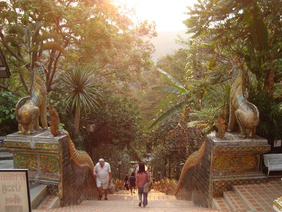 Die Treppe hinauf zum Tempel des gut 1000 Meter hoch gelegenen Berges nordwestlich Chiang Mais.